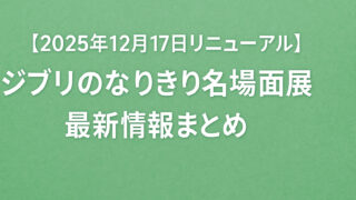 ジブリパーク ジブリファン必見!「ジブリのなりきり名場面展」リニューアル日と見どころ ジブリファン必見!愛知県長久手市のジブリパーク「ジブリの大倉庫」で開催されている「ジブリのなりきり名場面展」が、2025年12月17日(水)にリニューアルされます。これまで『となりのトトロ』や『千と千尋の神隠し』の名シーンを体験できる展示... 2025.09.27 ジブリパーク