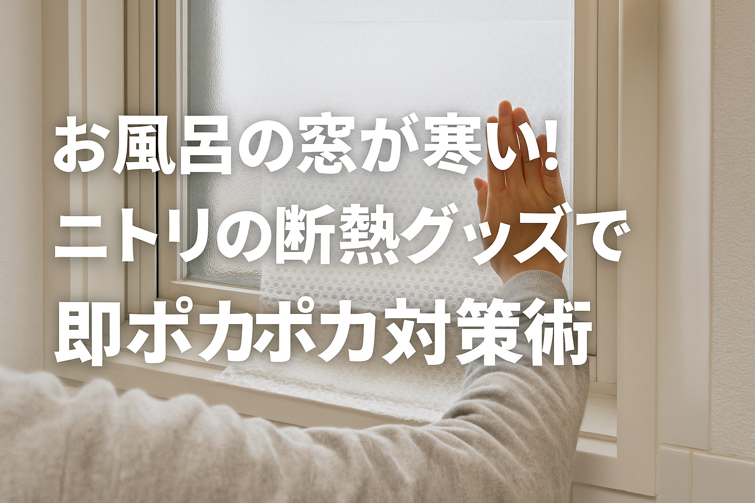 こうした無駄を防ぐために、まず取り組みたいのが**「窓の断熱強化」**。ニトリのアイテムを使って窓からの冷気をブロックするだけで、浴室内の温度をキープしやすくなり、暖房効率が大幅にアップします。