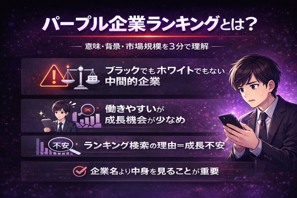 この記事では、パープル企業の意味からランキングの傾向、見抜き方までわかりやすく解説します。