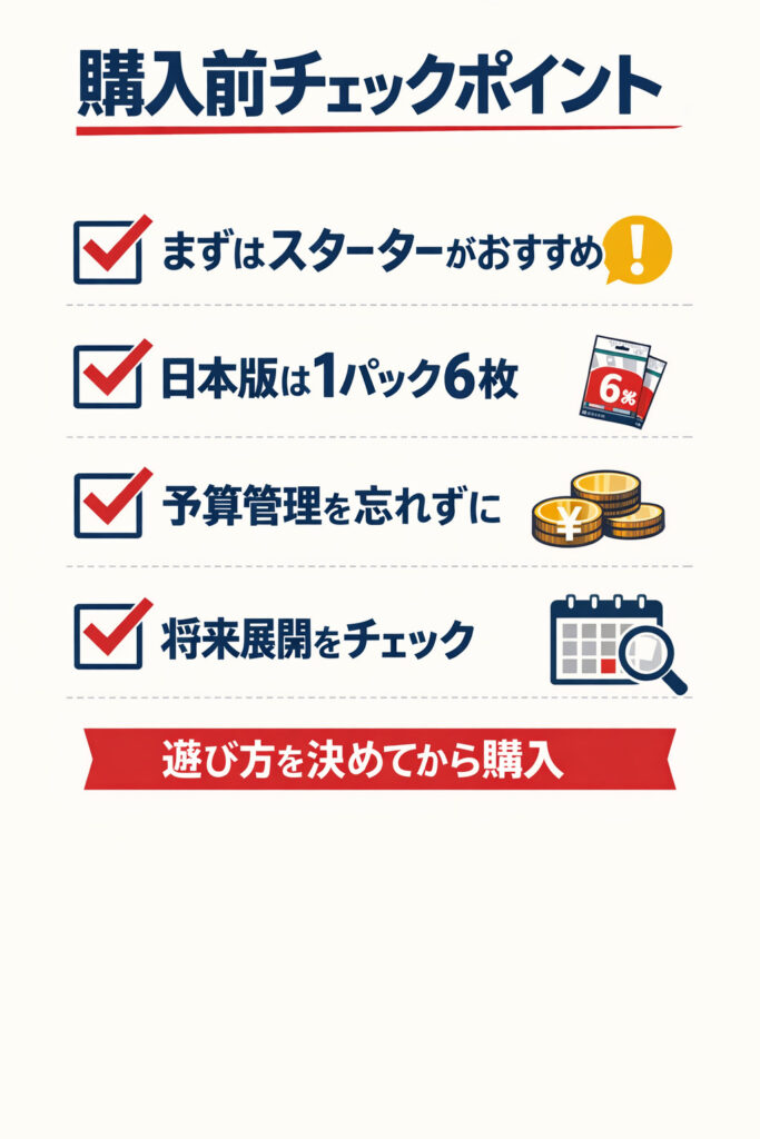 | 初心者向け | スターターデッキから始めるのが安心 |
