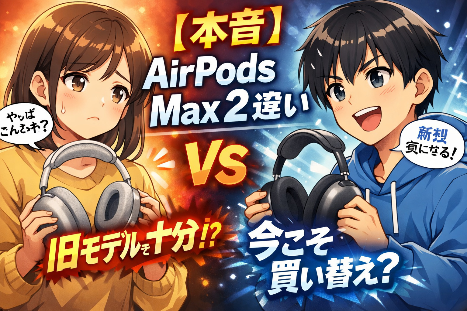 この記事では、AirPods Max 2と従来モデルの違いをわかりやすく整理し、「何が変わったのか」「買い替える価値はあるのか」「今買うならどちらを選ぶべきか」がすっきり分かるようにまとめています。スペックをただ並べるだけではなく、どんな人にどちらが向いているのかまで踏み込んで解説するので、自分に合った選択がしやすくなります。