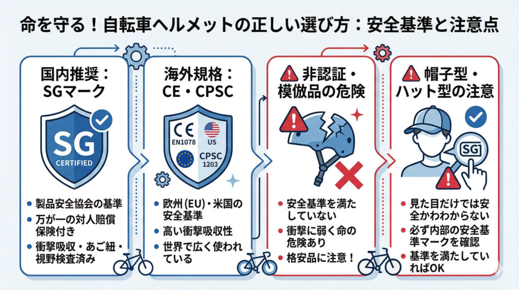 結論としては、「SGマーク付き」を選べばまず安心です。