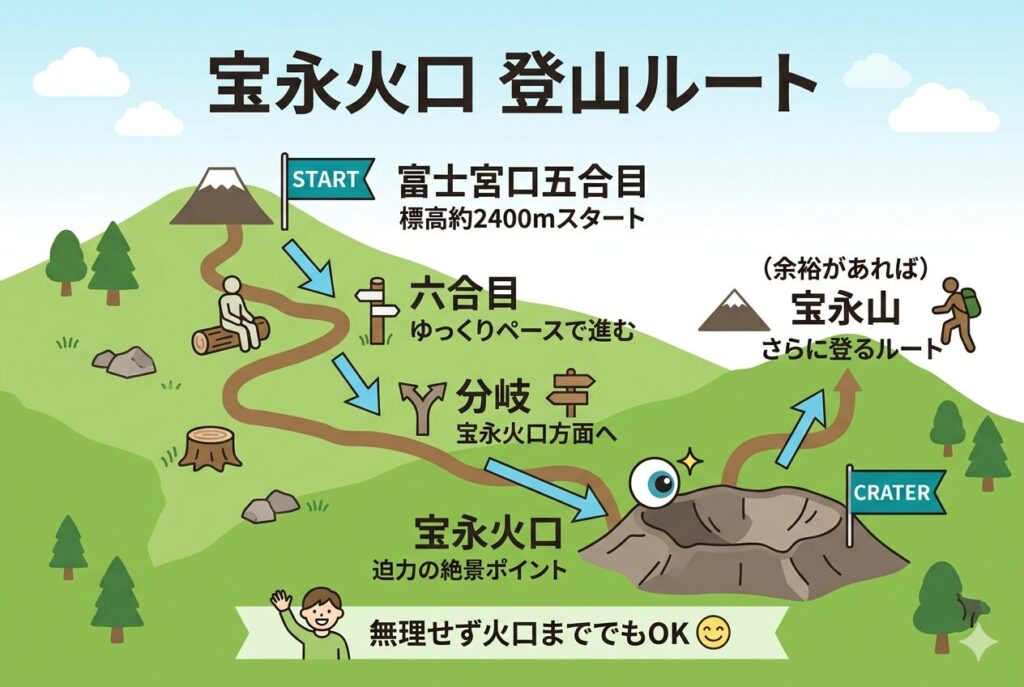 富士山の宝永火口登山を安全に楽しむためには、まずルートの全体像をしっかりイメージしておくことが大切です。