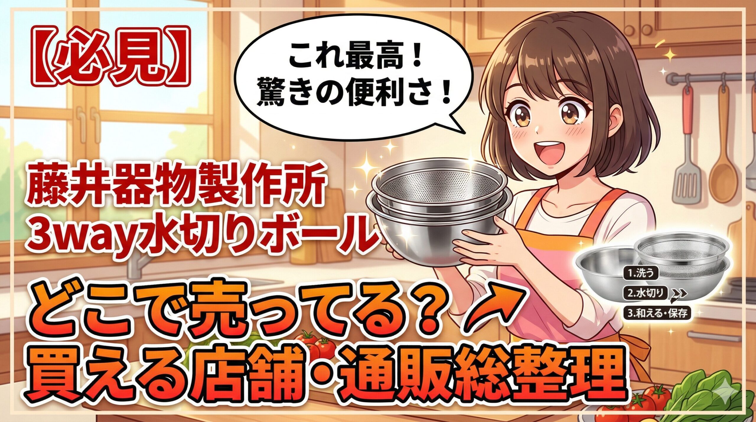 今回は、「藤井器物製作所の3WAY水切りボウルはどこで売ってるのか?」という疑問から、絶対に安い類似品を買ってはならない明確な理由まで、包み隠さず徹底解説いたしました。