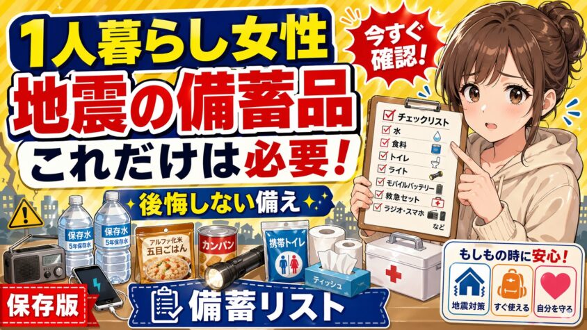 この記事では、一人暮らしの女性が「自分だけの力で生き抜き、身を守る」ためのリアルな防災備蓄リストについて解説しました。