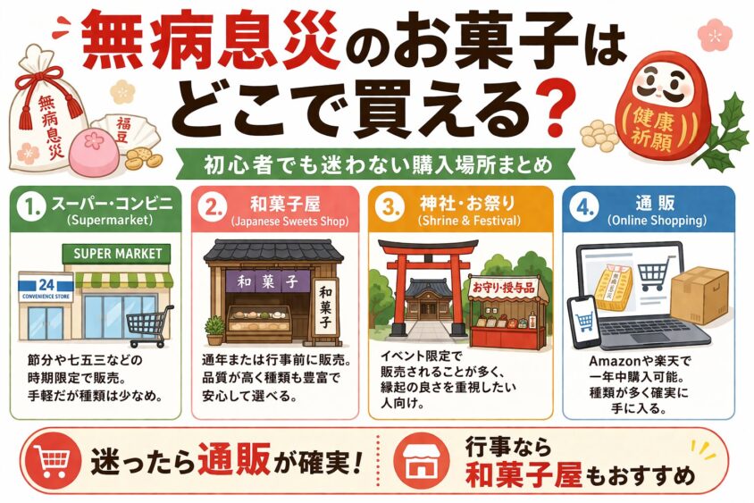 無病息災のお菓子はどこで売ってるのか、分かりやすく解説します。
