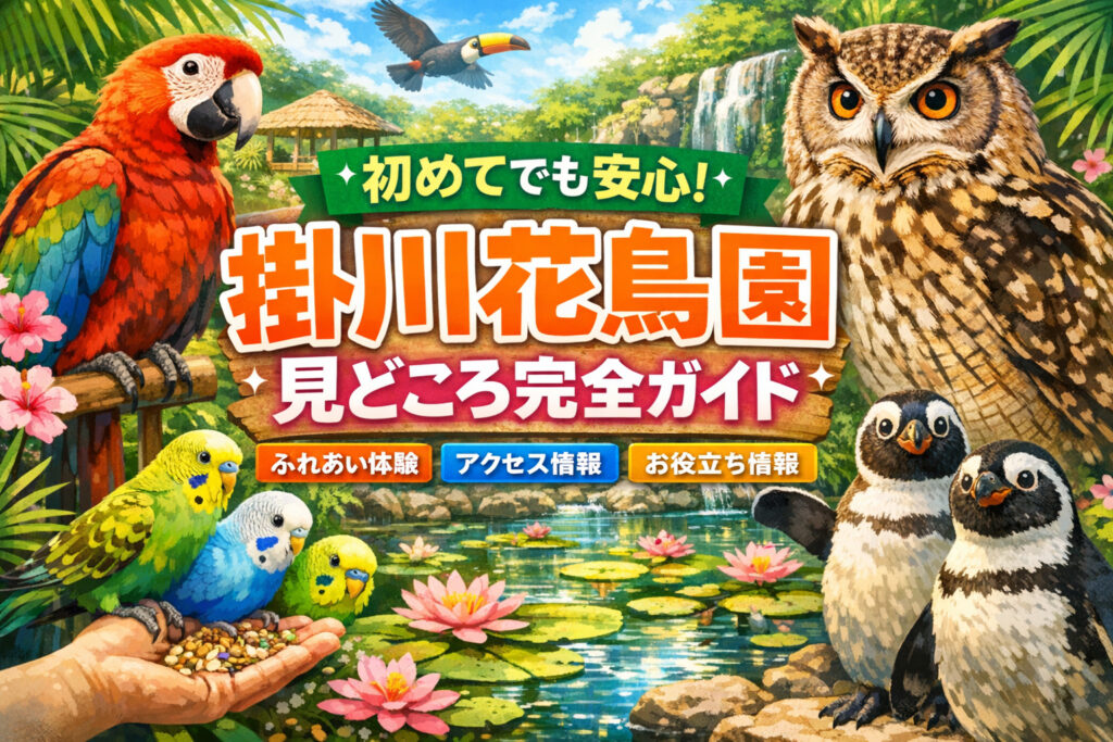 静岡県掛川市にある「掛川花鳥園」は、鳥好きはもちろん、子どもから大人まで誰でも楽しめる体験型テーマパーク。ただ眺めるだけでなく、インコやフクロウ、ペンギンたちと直接ふれあえる“癒しと驚き”がいっぱいの空間です。 「初めて行くけど、どう回れば... -